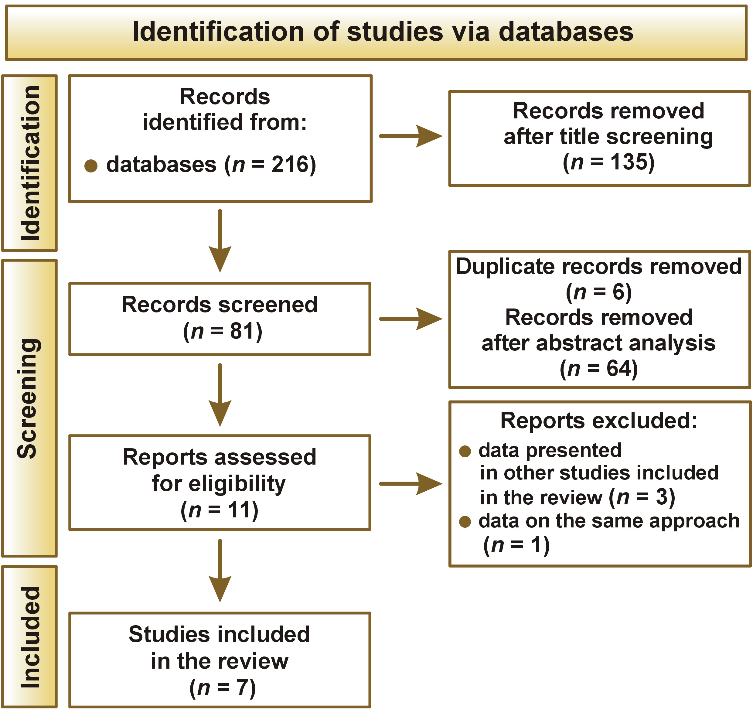 Figure 1 presents the literature search flow diagram. An initial search showed 216 articles (PubMed – 99, Web of Science – 62, Scopus – 55). Manual search did not reveal any additional articles. After examining the titles, 81 articles remained (PubMed – 35, Web of Science – 23, Scopus – 23). After applying the de-duplication function in the citation management software EndNote Web, 75 records were left. Based on the analysis of the abstracts, 11 manuscripts were selected for evaluation. However, after a detailed analysis of the content of the articles, 3 of them were excluded, since they concerned prospective studies, and their final results were presented in the papers by Bjørndal et al.22 and Maltz et al.23 One paper was excluded due to the evaluation of 2 protocols for the SCR method.24