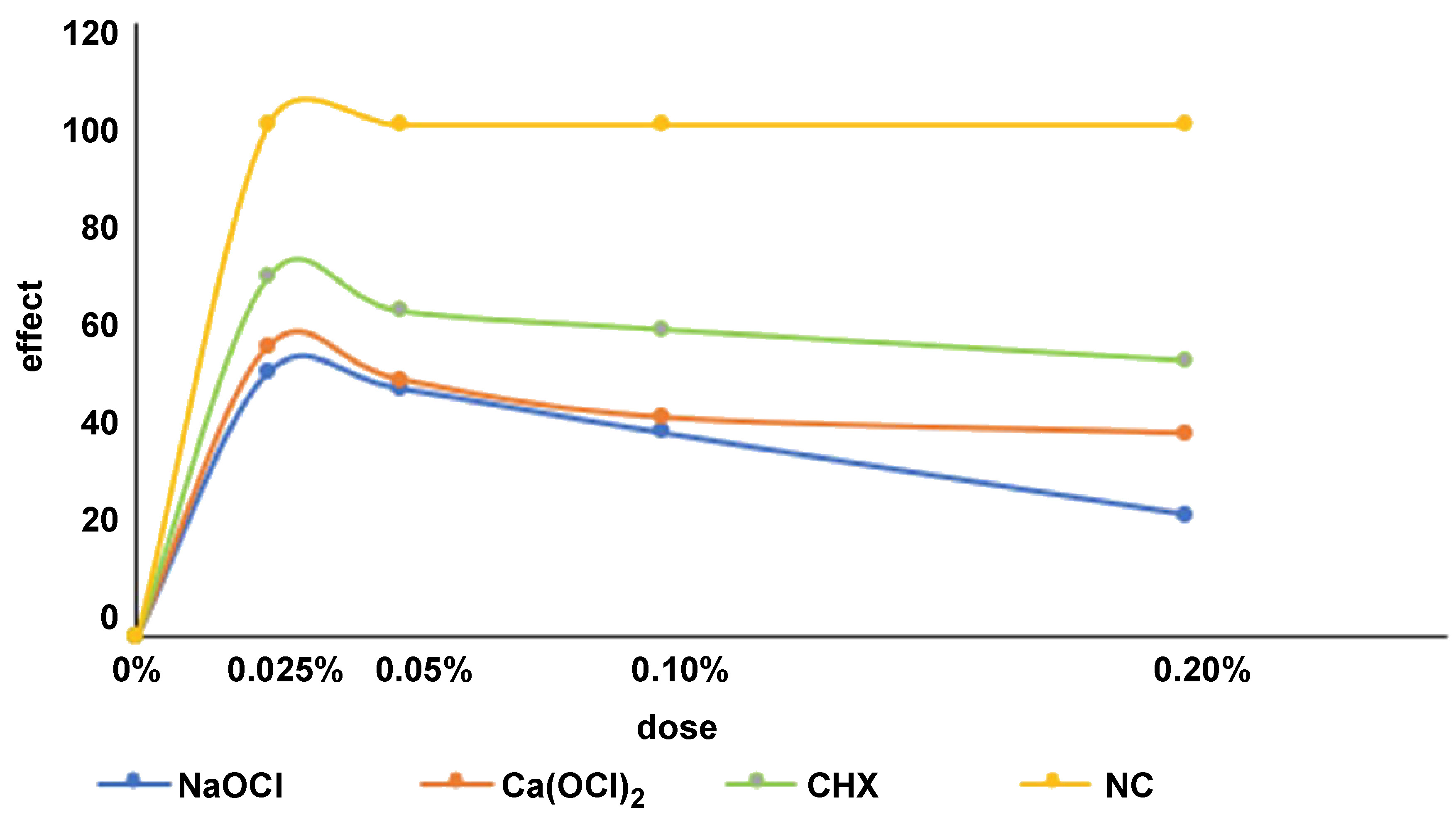 – group B: 10% Ca(OCl)2 diluted to 0.025%, 0.050%, 0.10%, and 0.20%;