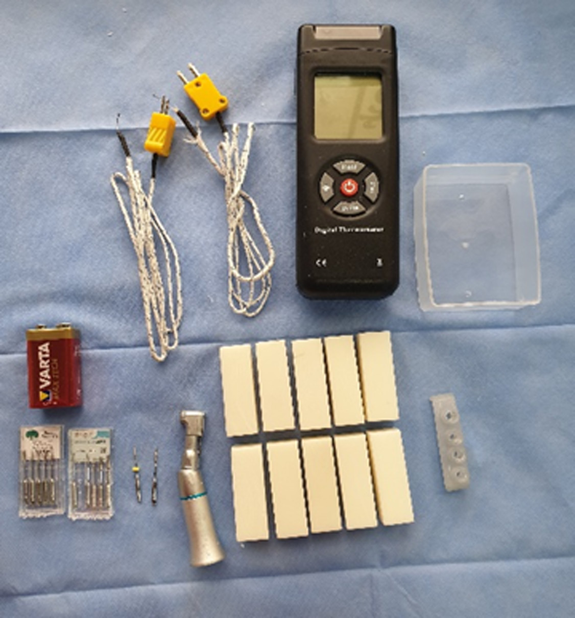 A comparative laboratory study was conducted to assess an increase in temperature when using either the conventional method or a surgical guide for dental implant placement. The study was carried out between December 2019 and March 2020.