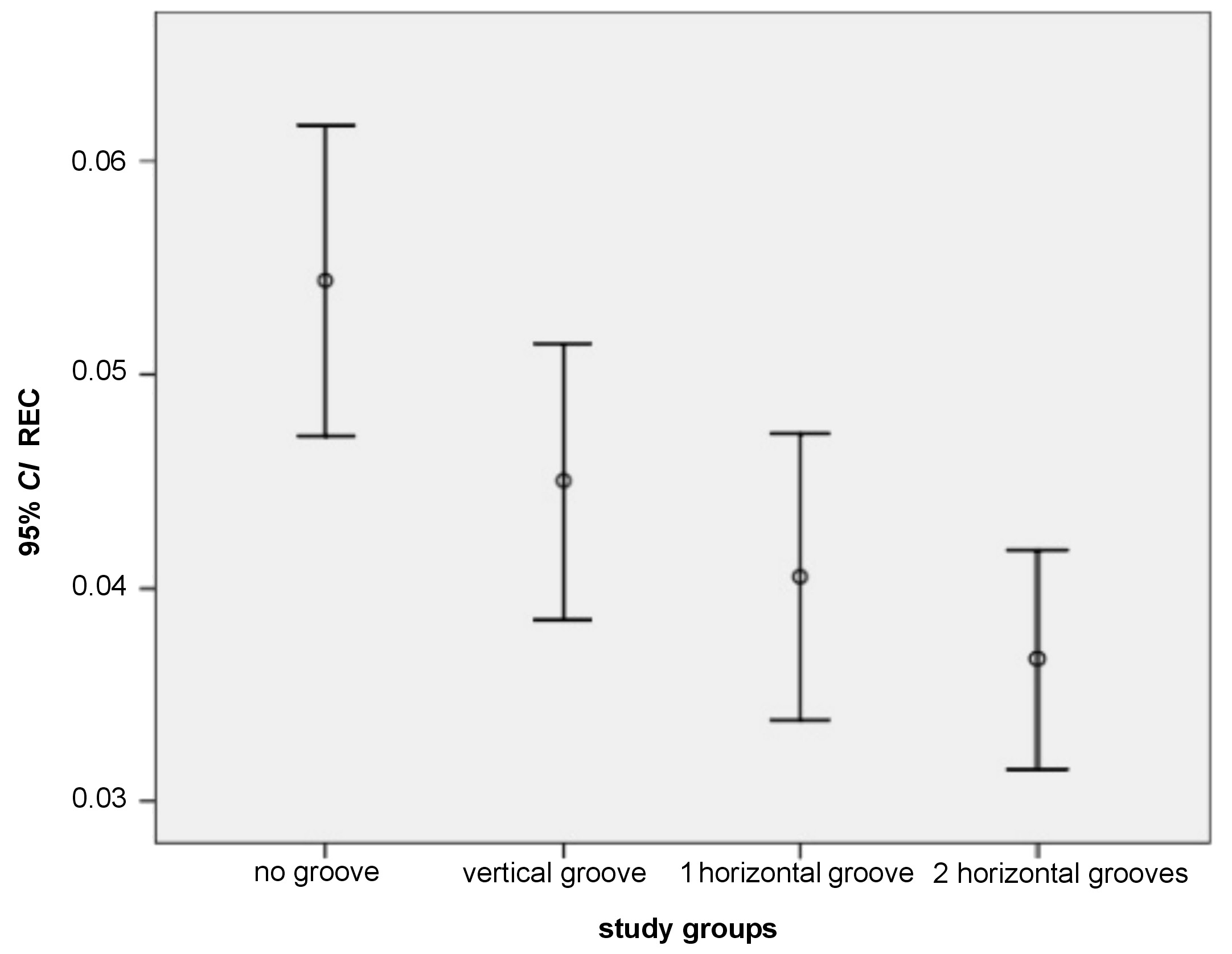 Results. The mean REC values of the groups with 1 and 2 horizontal grooves were significantly different as compared to the control group (p < 0.05).