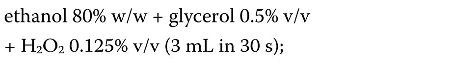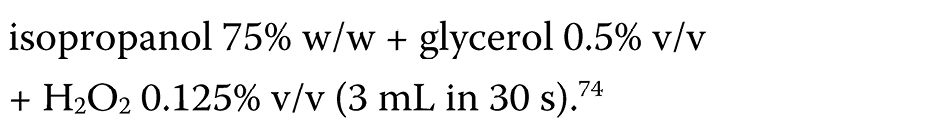 During the COVID-19 pandemic, hand-rub products are widely used in healthcare settings as one of the infection control tools. In routine medical practice, the ABHR formulations (ethanol or isopropanol agents) are commonly applied, as recommended by the WHO.30 However, their effectiveness appears to be limited and does not meet the European standards.72, 73 Thus, modified formulations have been suggested. Suchomel et al. proposed the following modified formulations: