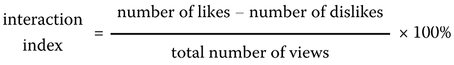 The demographics of the videos, such as the title, the country of origin, duration in minutes, the date of upload, the source of upload, and the total number of views, likes and dislikes, were extracted. The sources of upload were categorized as academic or professional organizations, companies, healthcare professionals, individual users, and others. Viewer interaction was evaluated in terms of the interaction index and the viewing rate, which were calculated for each video based on the methods described in previous studies (Equation 1).13, 14