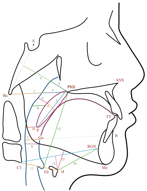 The measurement of the upper airway dimensions was based on the identification of specific landmarks on the LC (Figure 1). The definitions of the different points and measurements used are shown in Table 1.