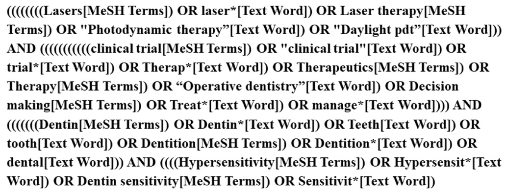 The inclusion criteria were: (1) studies carried out on humans; (2) articles that reported on the treatment of DH using laser therapy; and (3) studies that were not case reports, literature reviews, or systematic reviews.