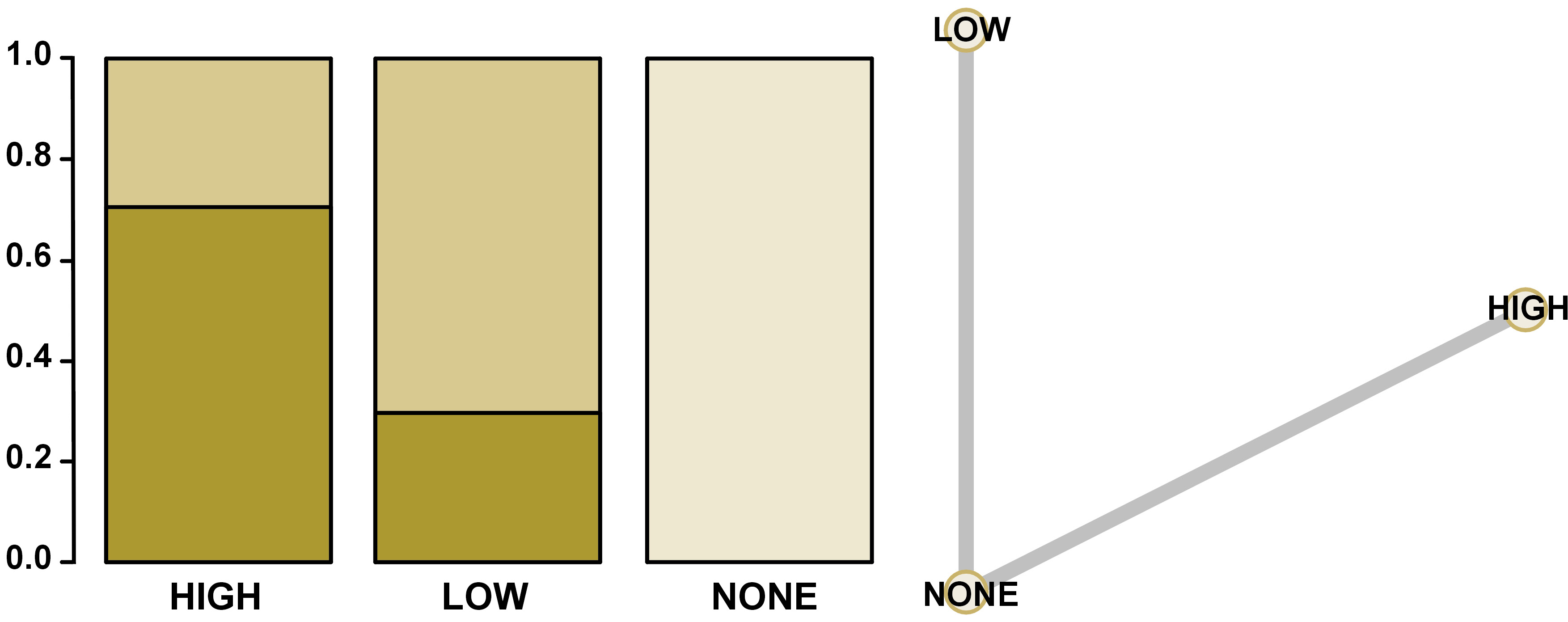 In Figure 6, it was possible to observe through the ranking and network analysis that the high-power lasers showed a greater chance to be the better treatment option, followed by low-power lasers, and performing no treatment the worst concerning self-reported pain for DH. The network diagram is also shown in Figure 6.