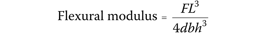 The flexural modulus [MPa] was determined using the following formula (Equation 2):