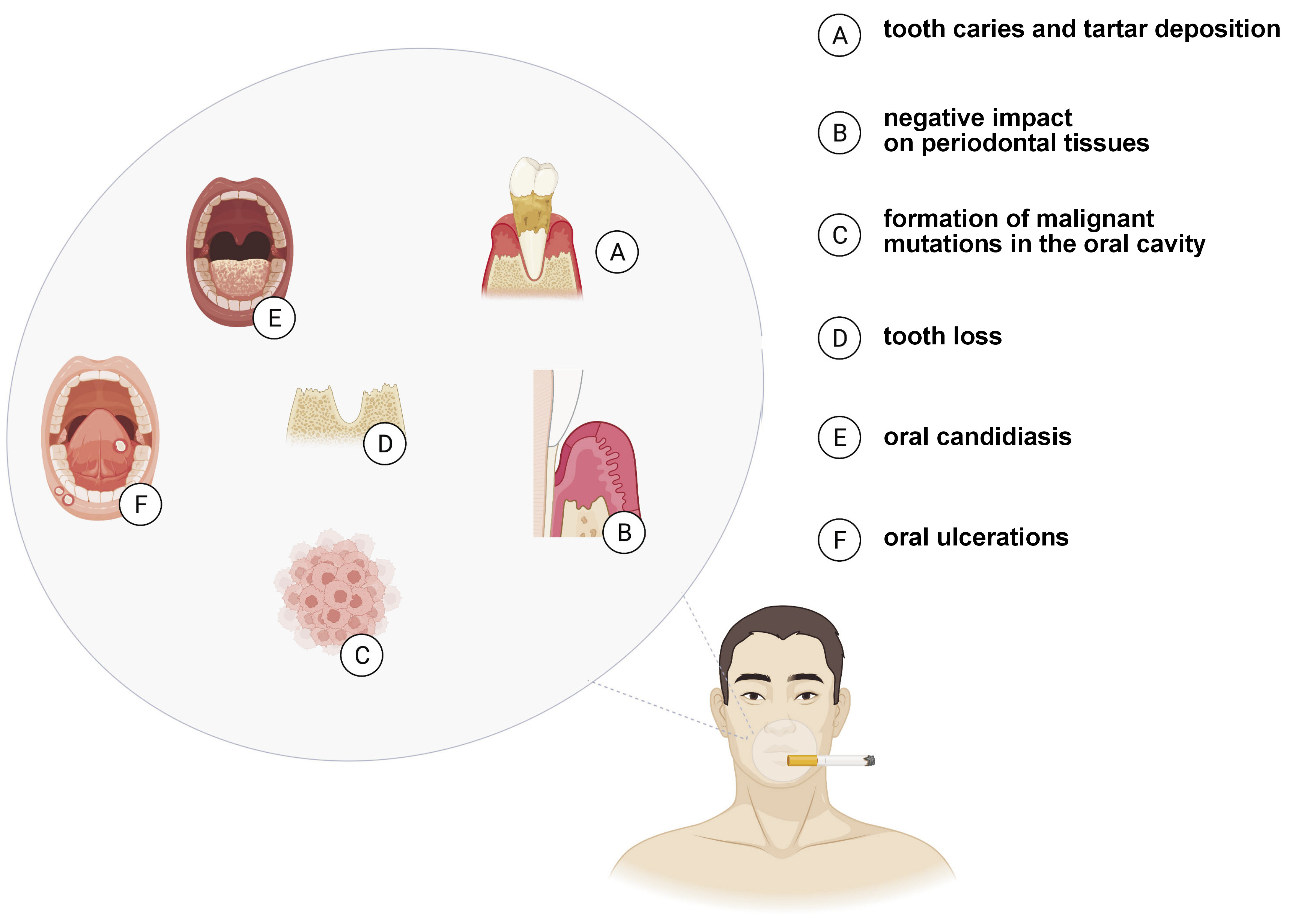 Despite the implementation and popularization of anti-tobacco programs, addiction to smoking continues to be a global public health problem1 and is one of the primary causes of premature deaths, decreasing life expectancy by up to 8 years.2 Cigarette smoke (CS) contains over 5,000 harmful substances, 400 of which are scientifically proven carcinogens, such as formaldehyde, benzene and vinyl chloride,3 with the latest research demonstrating that the poisonous chemicals contained in cigarettes reach every organ in the human body.4 In addition to an increased risk of cancer, smoking raises the probability of stroke, respiratory diseases and inflammation, and weakens immune functions.5, 6 Smoking also adversely affects the oral ecosystem, the consequences of which are well-documented; they comprise relatively mild complaints (e.g., bad breath, tooth discoloration, and an increased accumulation of plaque and tartar), but also life-threatening diseases (including oral cancer).7, 8