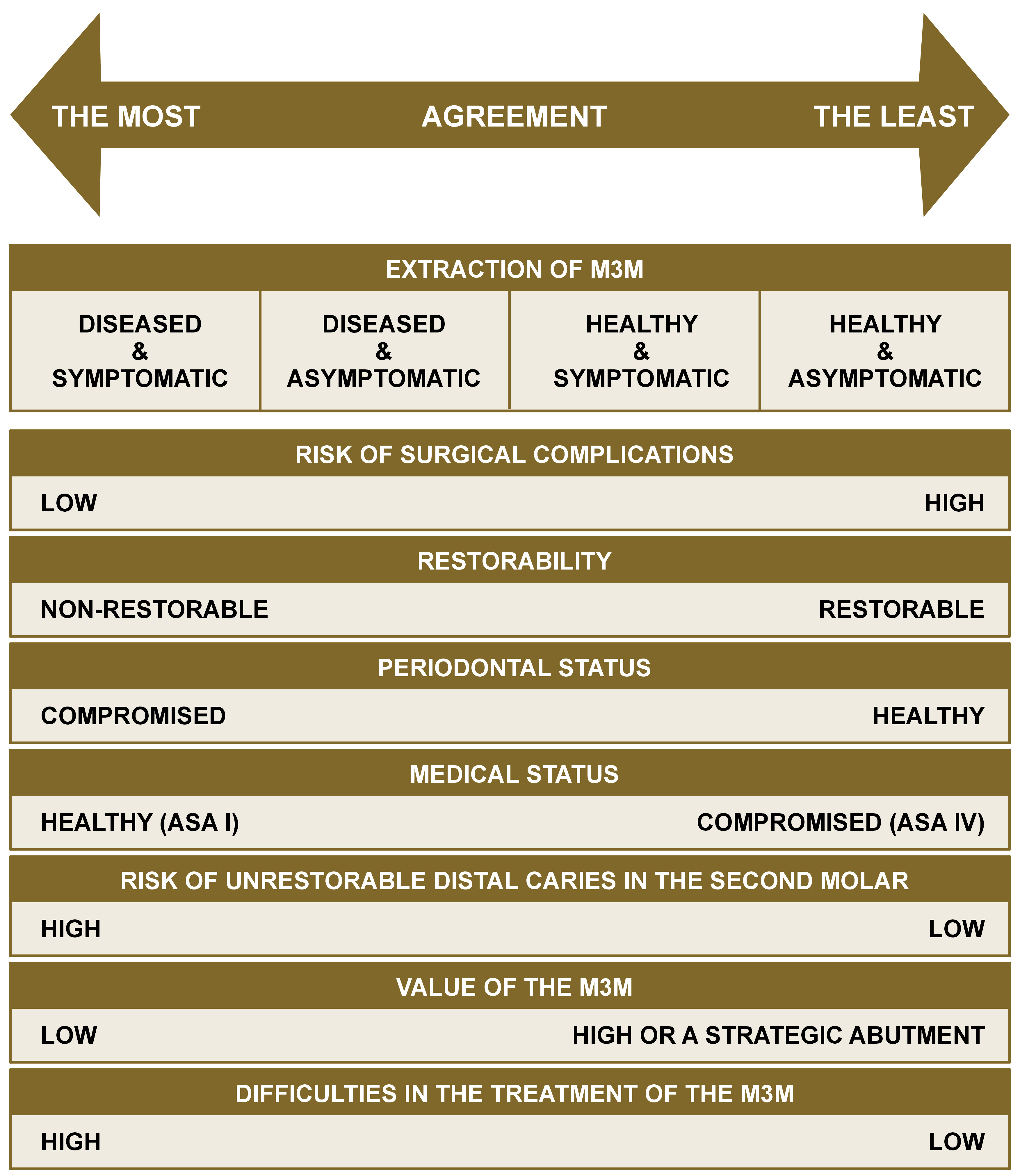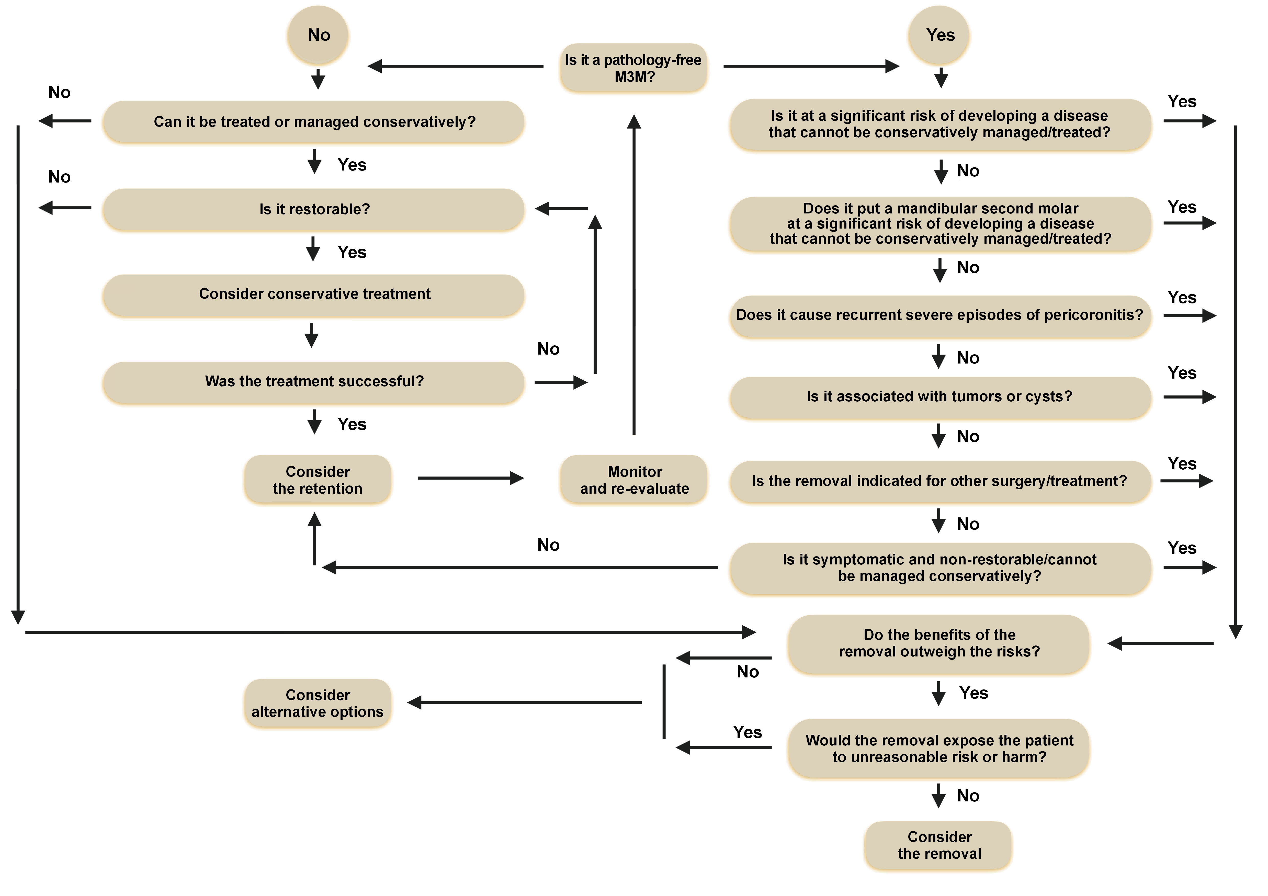 Generally speaking, there is agreement that diseased, symptomatic and non-restorable M3Ms should be removed. However, for healthy, asymptomatic and restorable M3Ms, there is less consensus (Figure 2).9