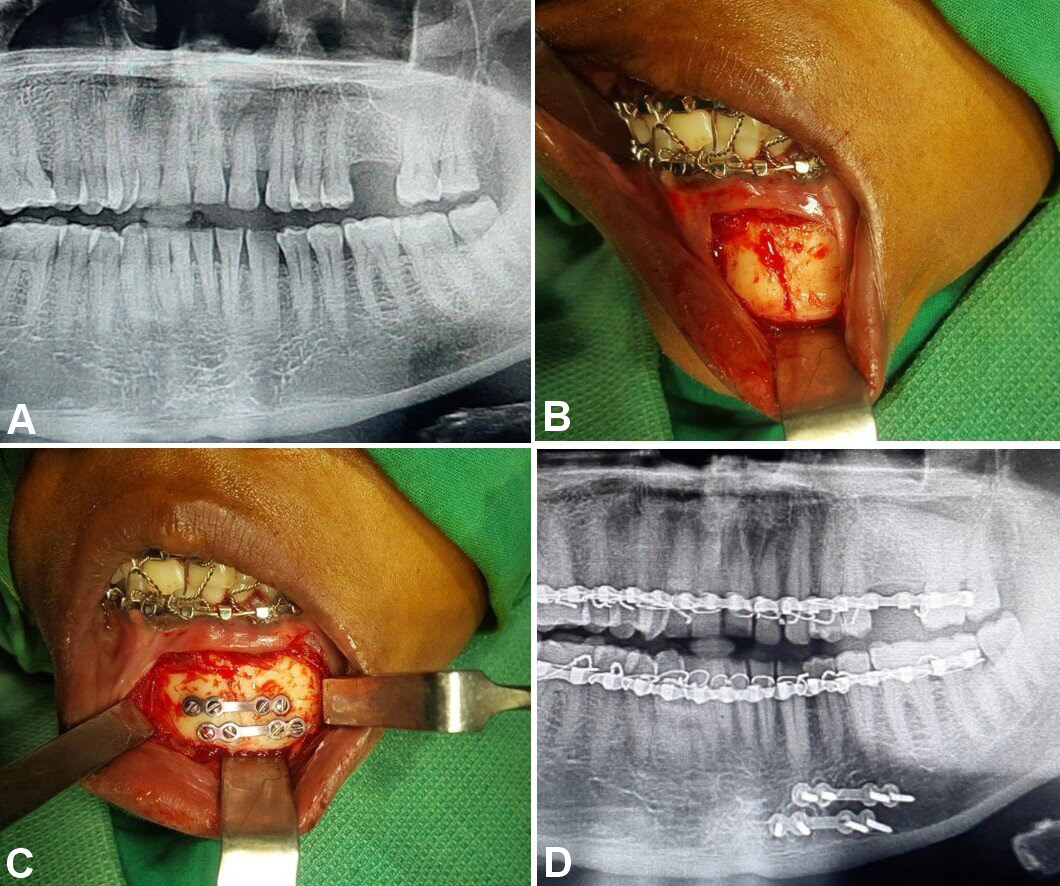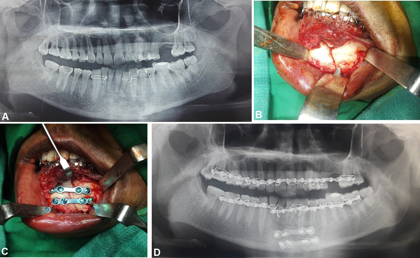 The etiology of facial bone fractures can be attributed to a number of factors, including road traffic accidents, interpersonal violence, falls, and sport-related injuries.1 Maxillofacial and mandibular injuries can cause facial disfigurement and functional impairment.2 The fundamental principles of treating mandibular fractures include proper anatomical reduction, restoration of the premorbid occlusion, and appropriate fixation until stable osseointegration. Open reduction and internal fixation are the main treatment modalities for managing mandibular fractures. Semi-rigid fixation techniques include methods such as intraosseous wiring, which allows intersegmental movement across the fracture line. However, this often results in delayed union, malunion, or non-union. Rigid fixation helps overcome these drawbacks by preventing intersegmental movement under active load and includes the use of reconstruction plates, miniplates, lag screws, and compression plates.