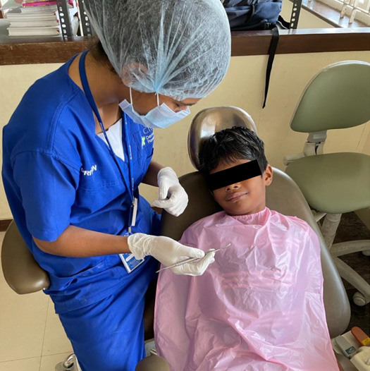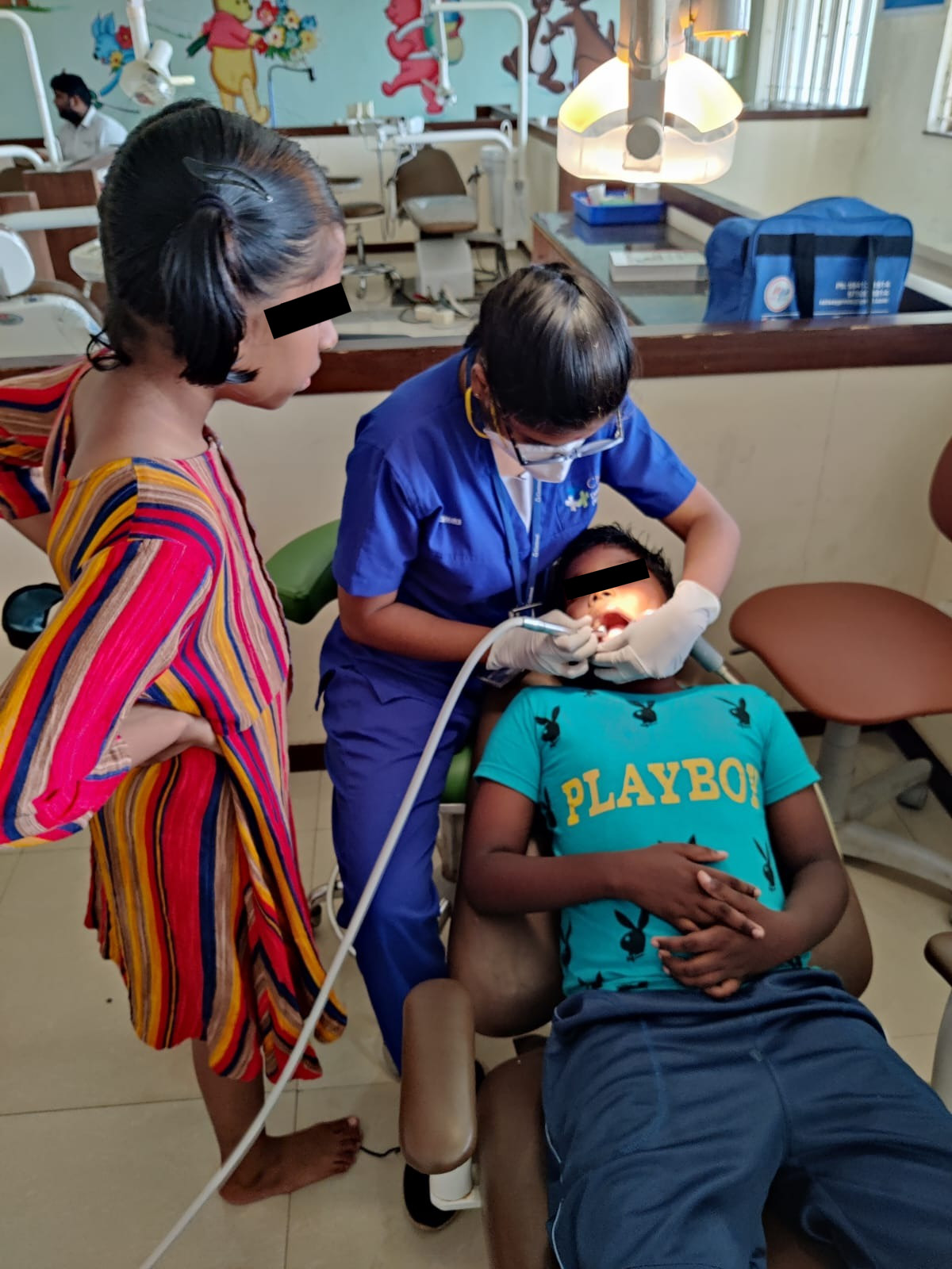 For children in group 1, the nature of the procedure was explained in a non-threatening and intelligible manner, in the language that the children were most comfortable with. Each child was presented with the required armamentarium and the procedure was mimicked in a typodont. The child observed the procedure being carried out by the dentist (Figure 2). After the observation phase, the child was reassured, and, with their consent, the dental procedure was initiated.