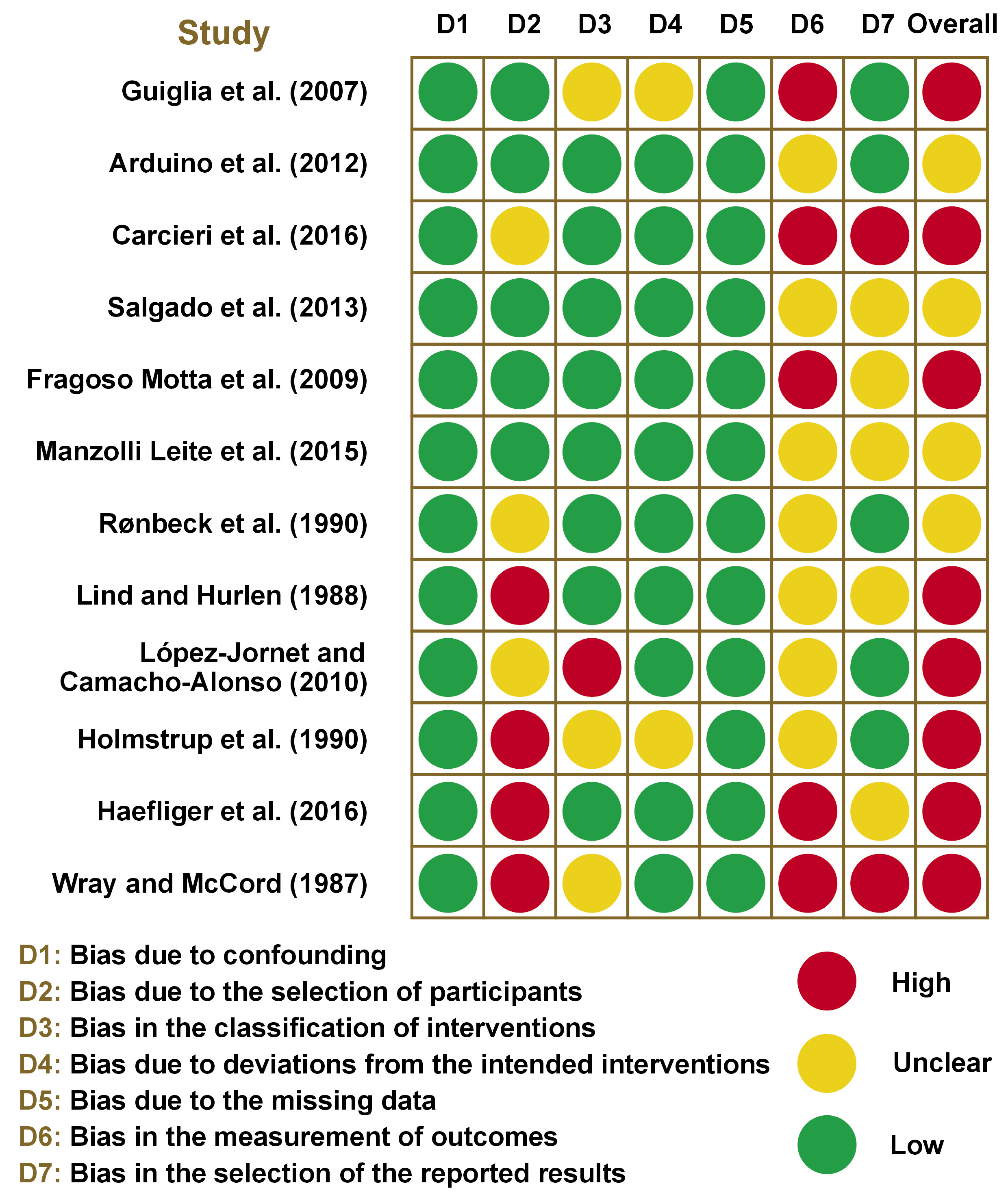 A Cochrane risk of bias assessment tool (RoB 2) was applied for both randomized and non-randomized studies to assess the risk of bias. Each study was analyzed with the prefabricated questions created by RoB 2.