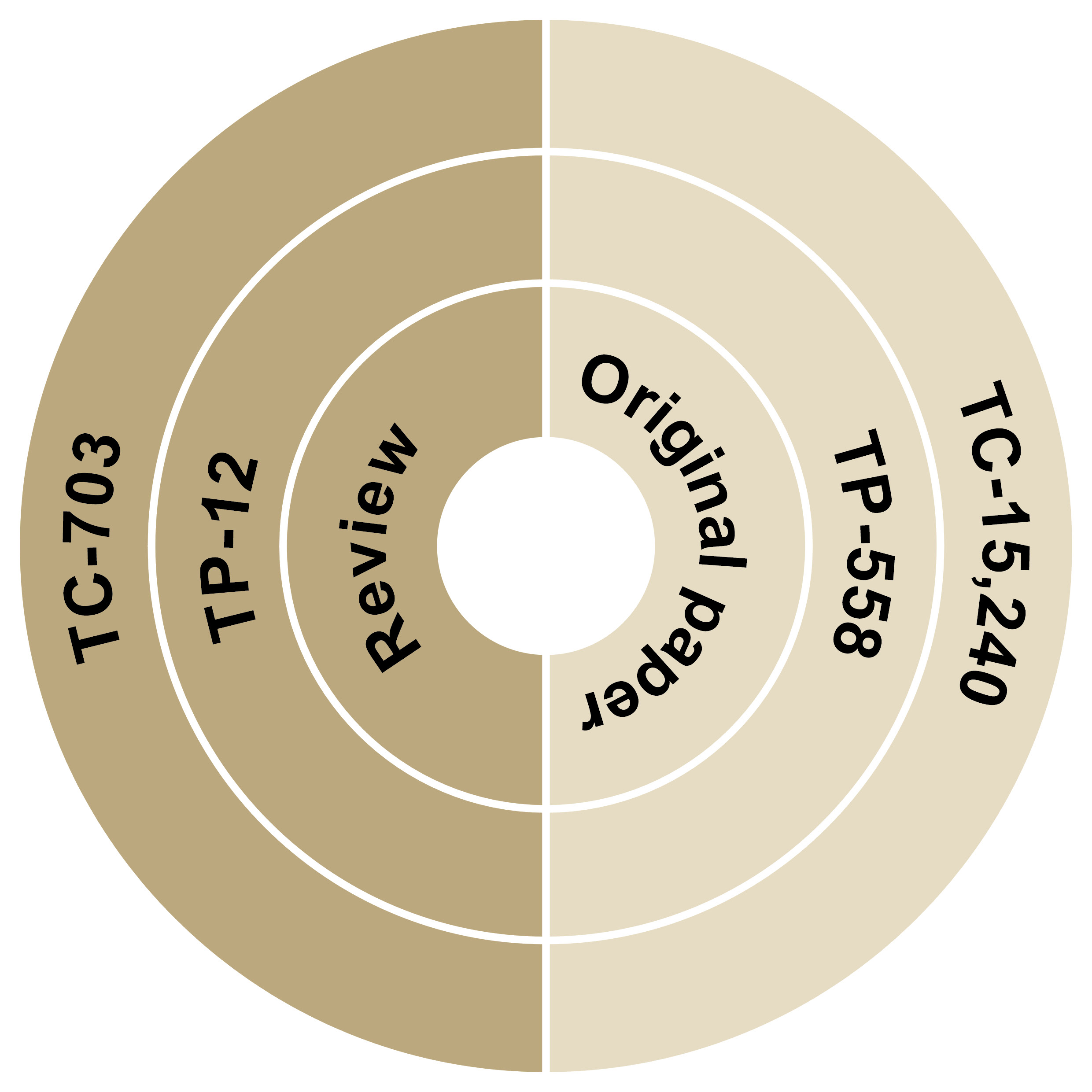 Figure 3 presents the TP and TC values for original papers and reviews. Original papers were the most prevalent form of publication, comprising approx. 98% of the research output. Reviews were the other prominent document type. Original papers received the highest share of total citations (n = 15,240), while reviews received the highest average number of citations per document (n = 58), outperforming all other document types.