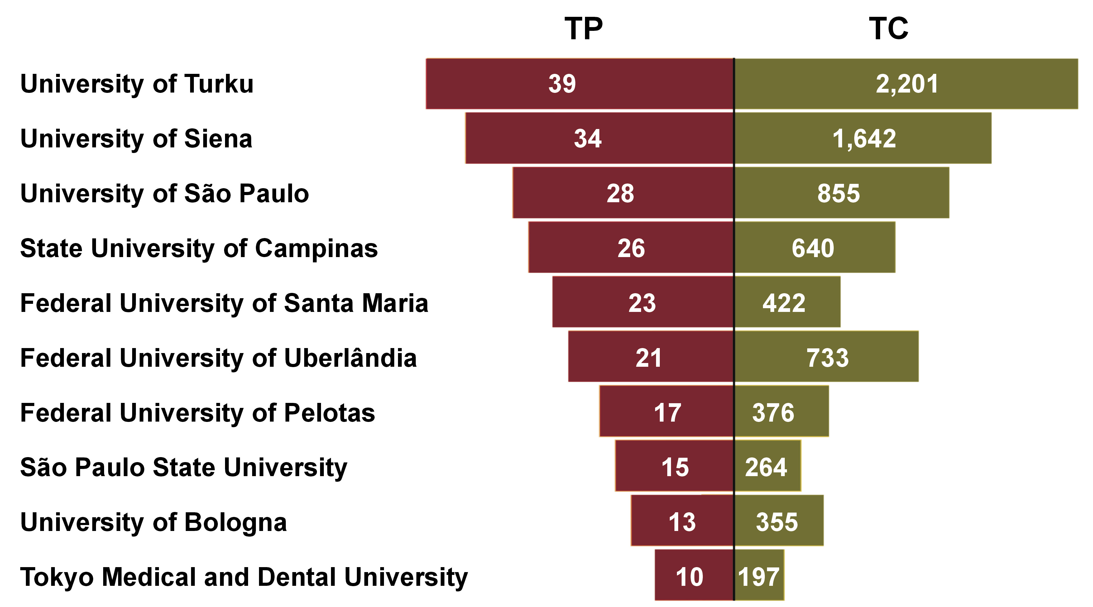 Table 4 lists the institutions that sponsored 4 or more studies. The TP funded by agencies, TC, and TC/TP are presented. The highest number of studies were funded by the Brazilian Federal Agency for Support and Evaluation of Graduate Education (CAPES) (n = 13). The publications financed by the Ministry of Science, Technology and Innovation of Brazil were cited with the best average of 67 citations per publication. The highest number of citations were received by the publications funded by the National Council for Scientific and Technological Development (CNPq) (n = 404).