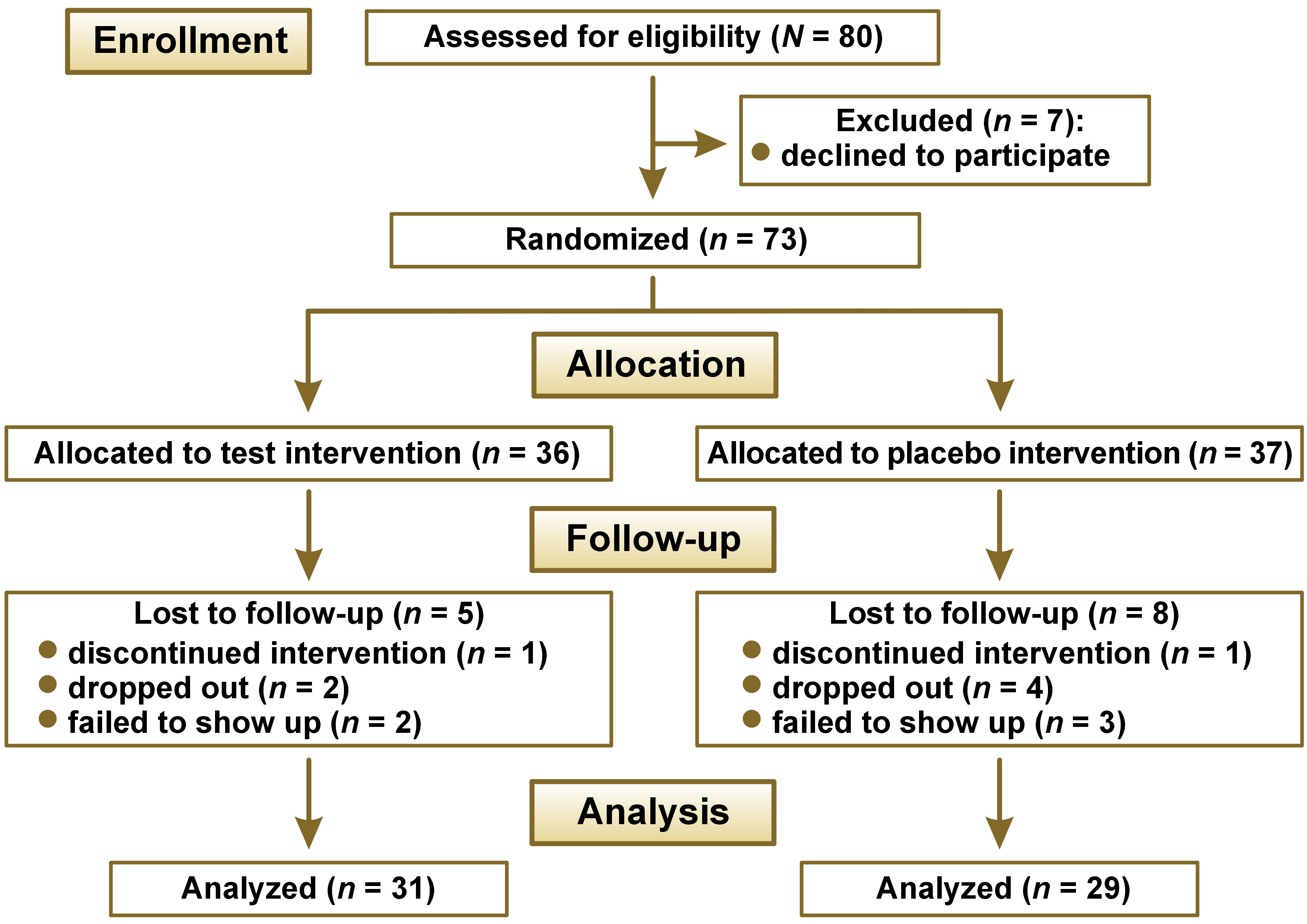 We randomly assigned eligible children into the test group or the placebo group with the aid of software that used permuted blocks of uniform size (three), containing computer-generated numbers. The random number was enclosed in an opaque envelope provided to the examiner before the baseline examination. All people involved (children/parents, clinicians/examiners, research group) remained fully blinded throughout the trial, and an independent monitor guaranteed the allocation concealment.