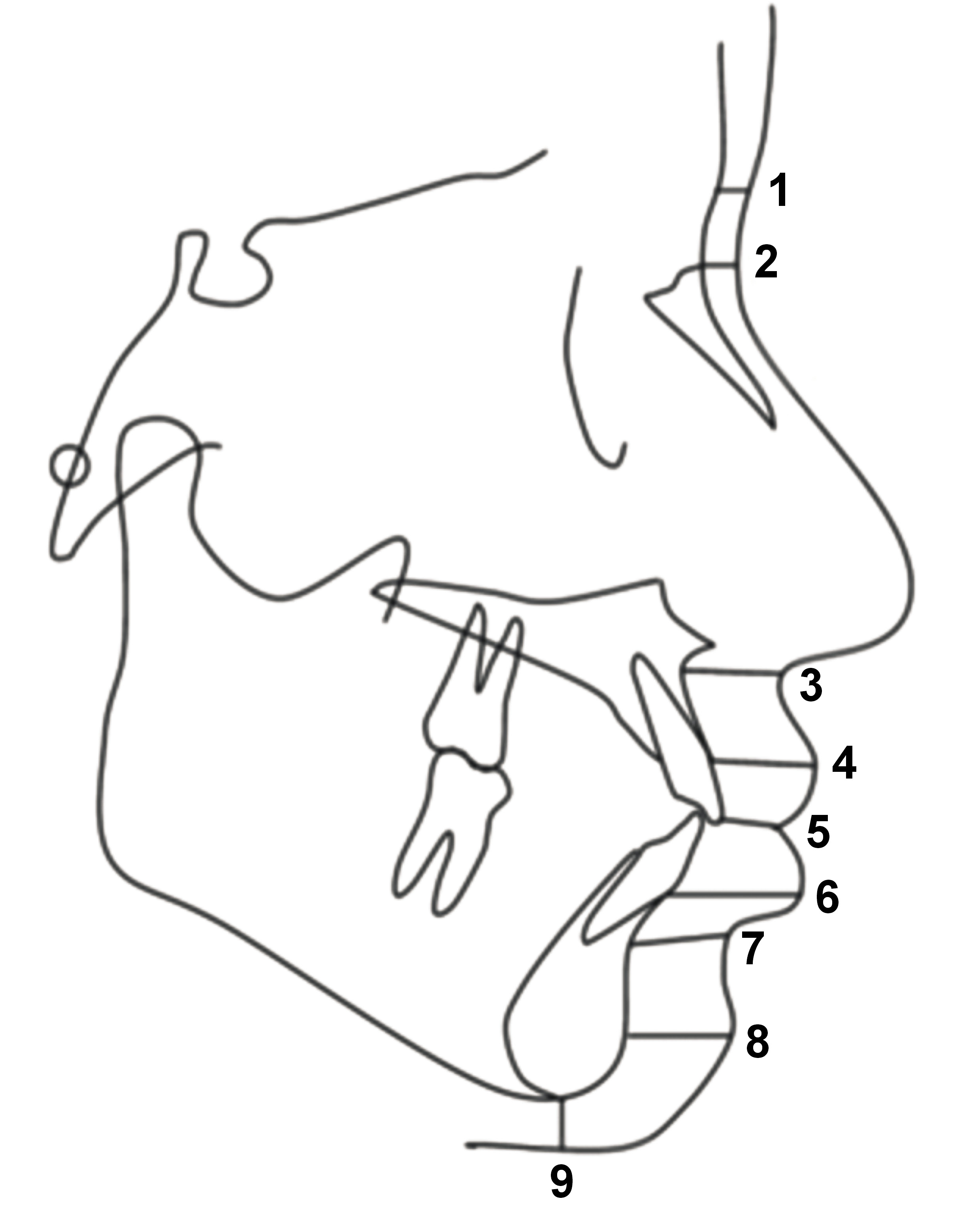 The lateral cephalograms were traced, and 9 hard tissue anatomical landmarks and their corresponding soft tissue analogs were identified according to the literature.1, 4, 5, 6, 7, 8, 9, 10 The landmarks were as follows: