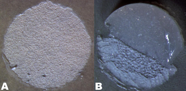 The debonded area was examined with a stereomicroscope (M3B; Wild Heerbrugg Ltd., Heerbrugg, Switzerland) at ×35 magnification for fracture analysis, and failure modes were recorded as adhesive, cohesive or mixed.