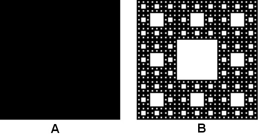 From a geometric perspective, classical Euclidean concepts are insufficient for describing the irregular morphology of OLP lesions. Fractal geometry, which allows dimensional values between 0 and 3, provides a more appropriate framework. Complex and irregular two-dimensional (2D) structures exhibit lower fractal dimension (FD) values, whereas simpler shapes approach a dimension of 2. Figure 1 illustrates the contrast between the FD of a square and the Sierpiński carpet. Fractal analysis therefore offers an objective, quantitative method for evaluating mucosal irregularities, making it well suited for assessing OLP lesion morphology and treatment outcomes.